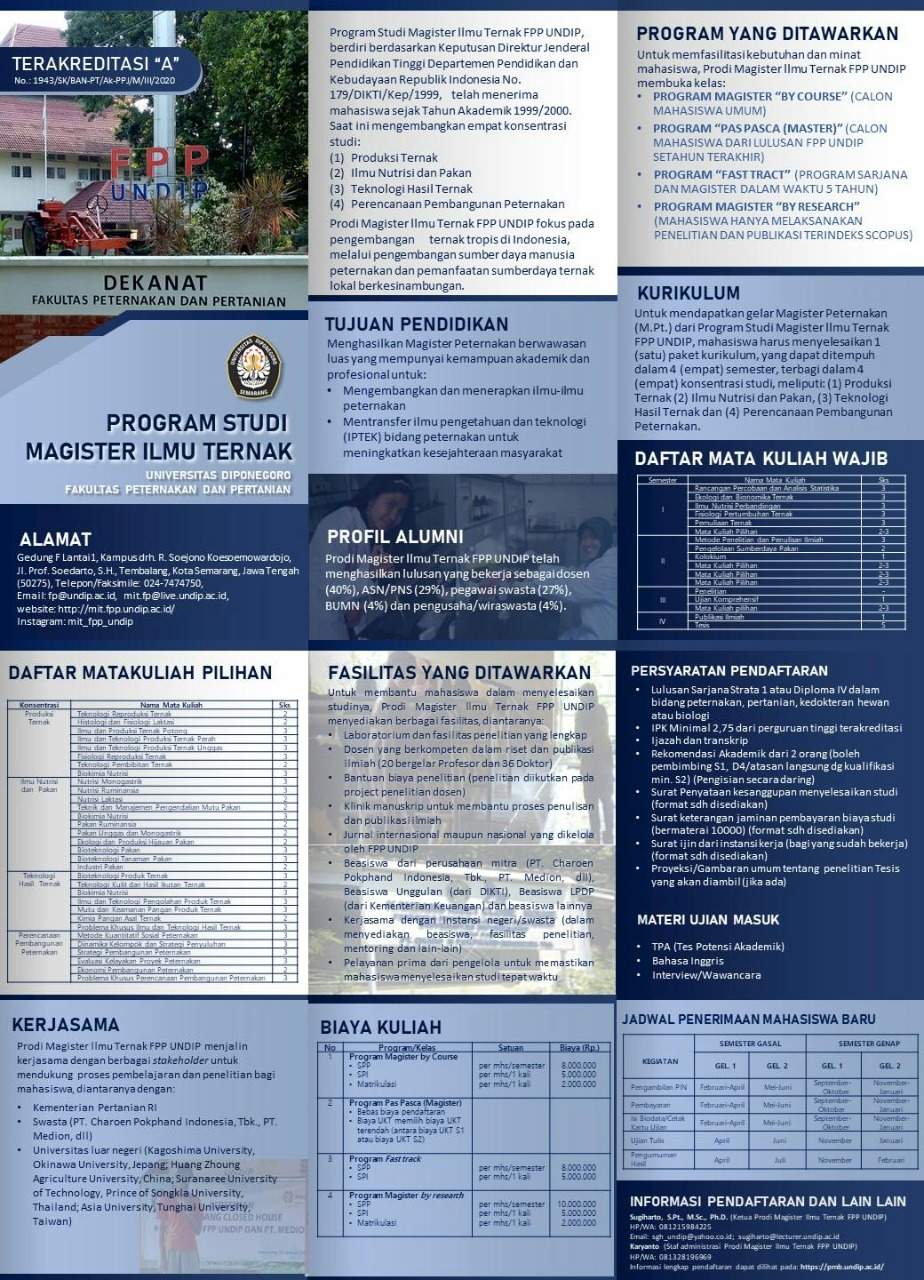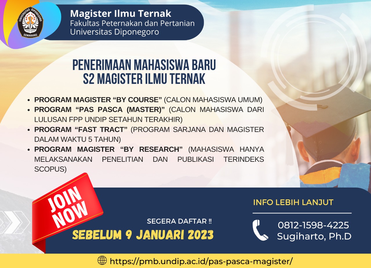 Program Studi Magister Ilmu Ternak membuka pendaftaran bagi calon mahasiswa baru semester gasal. Informasinya dapat dilihat pada gambar dibawah ini :